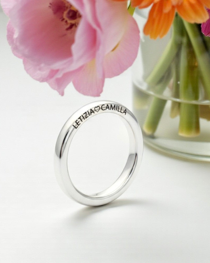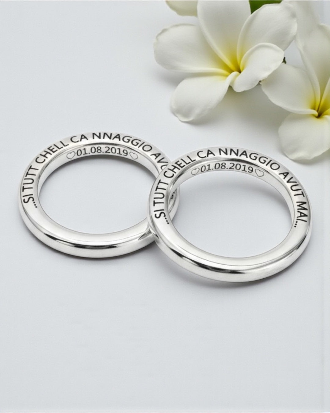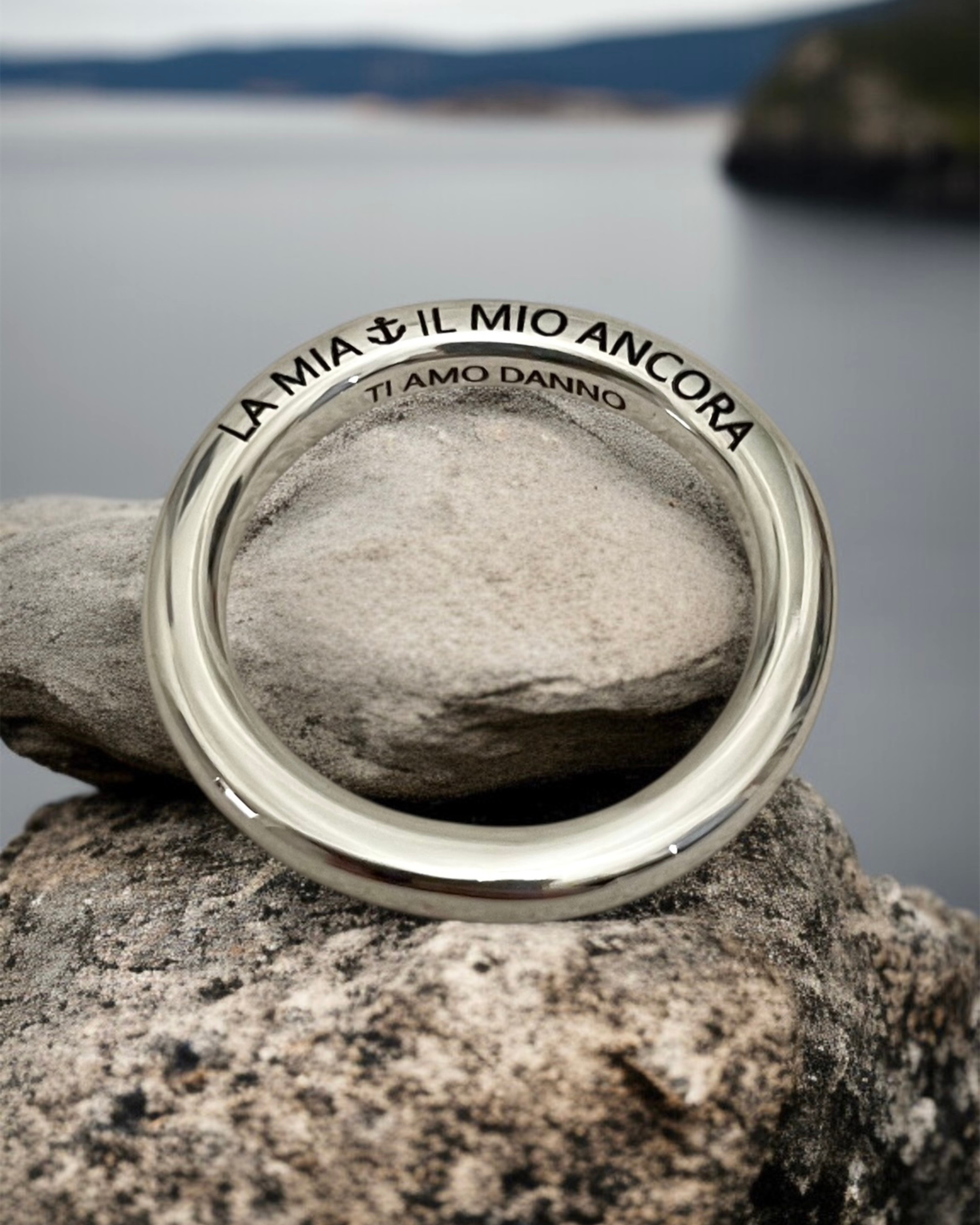 L’incisione laterale lo arricchisce creando una sorta di cornice con le parole che hai scelto