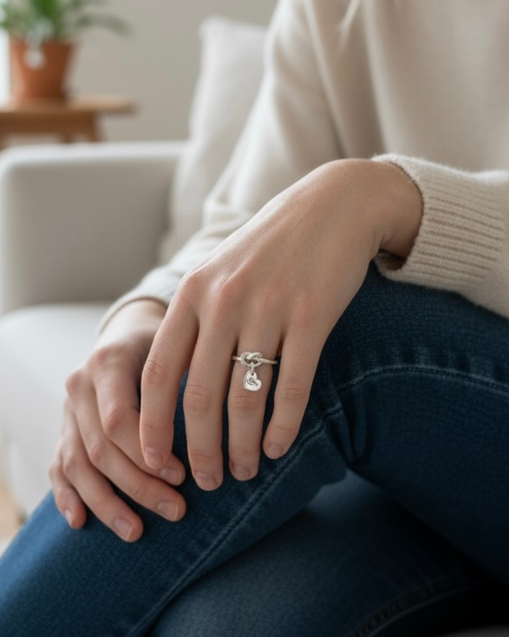 L‘anello nodo amore e‘ un modello bellissimo grazie al suo ciondolo a cuore