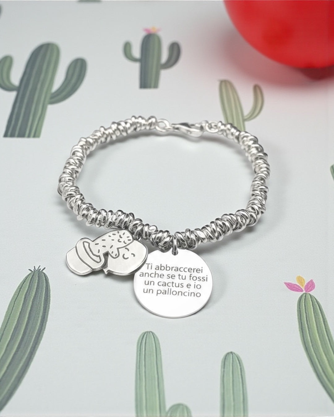 Questo bracciale è il gioiello più bello e dolce che tu possa regalare, l'abbraccio fra cactus e palloncino insieme alla frase faranno assolutamente colpo!