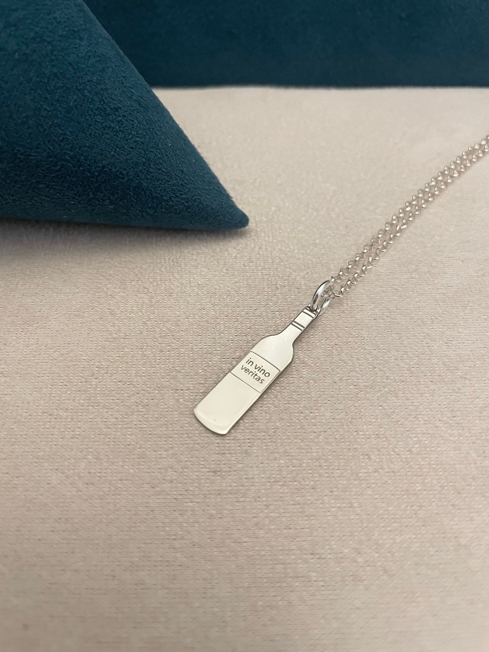 - Puoi incidere sia l’etichetta della bottiglia che il retro del ciondolo con una piccola scritta, nomi o dediche, una frase