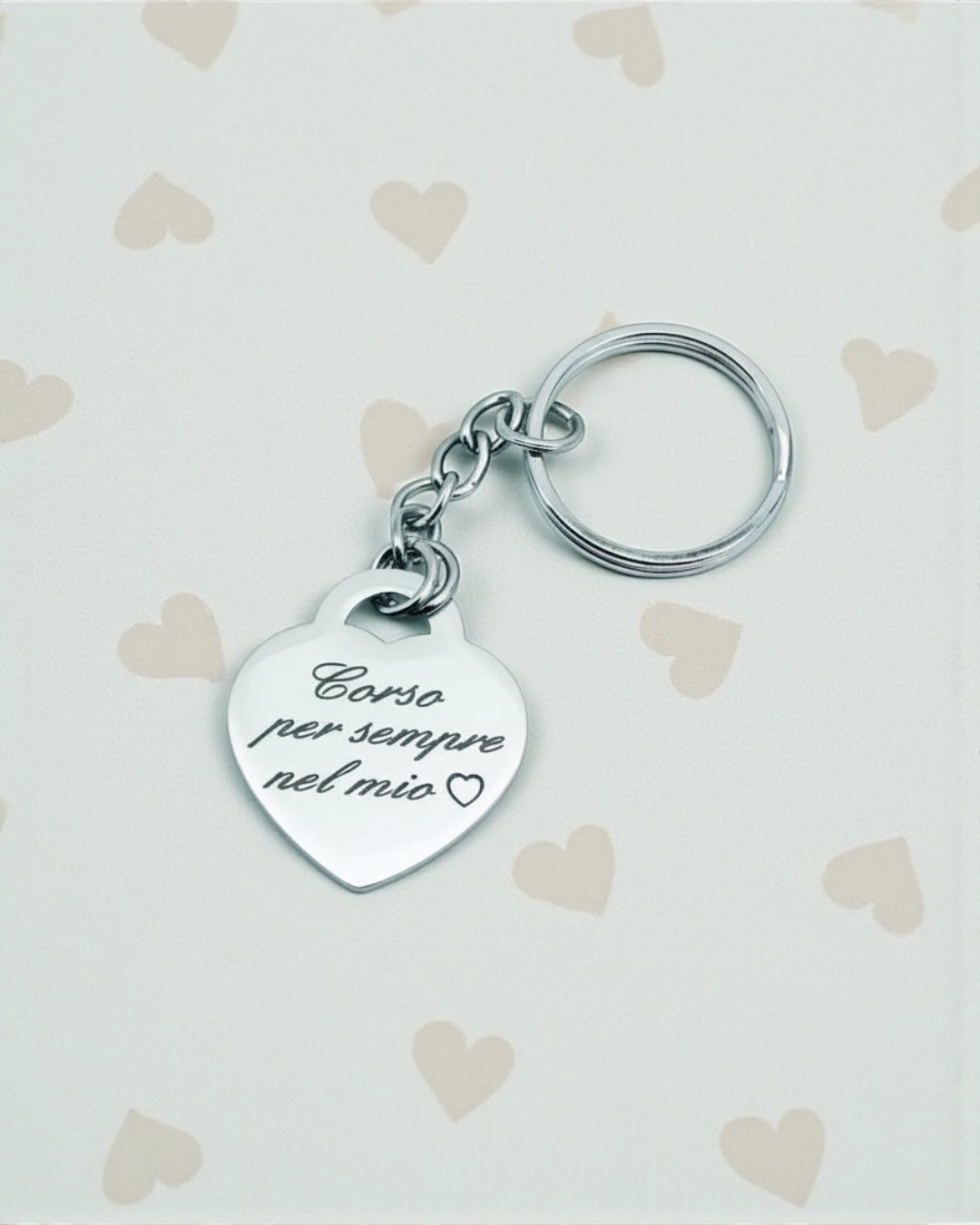 Portachiavi con ciondolo cuore in Argento 925, possibilità di incisione.