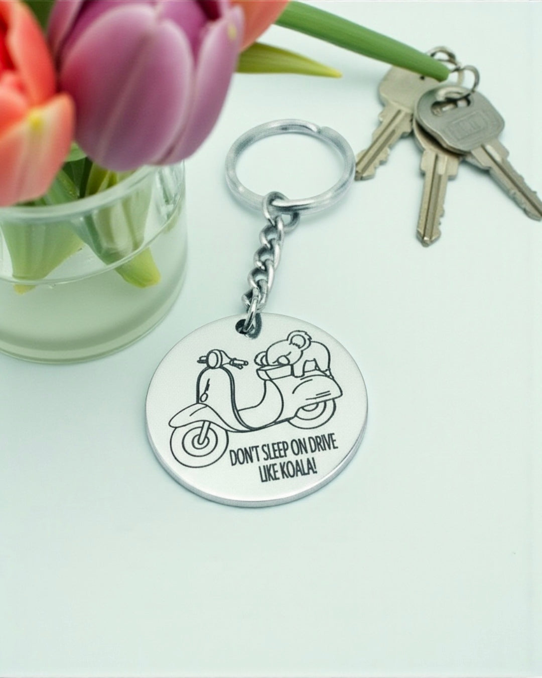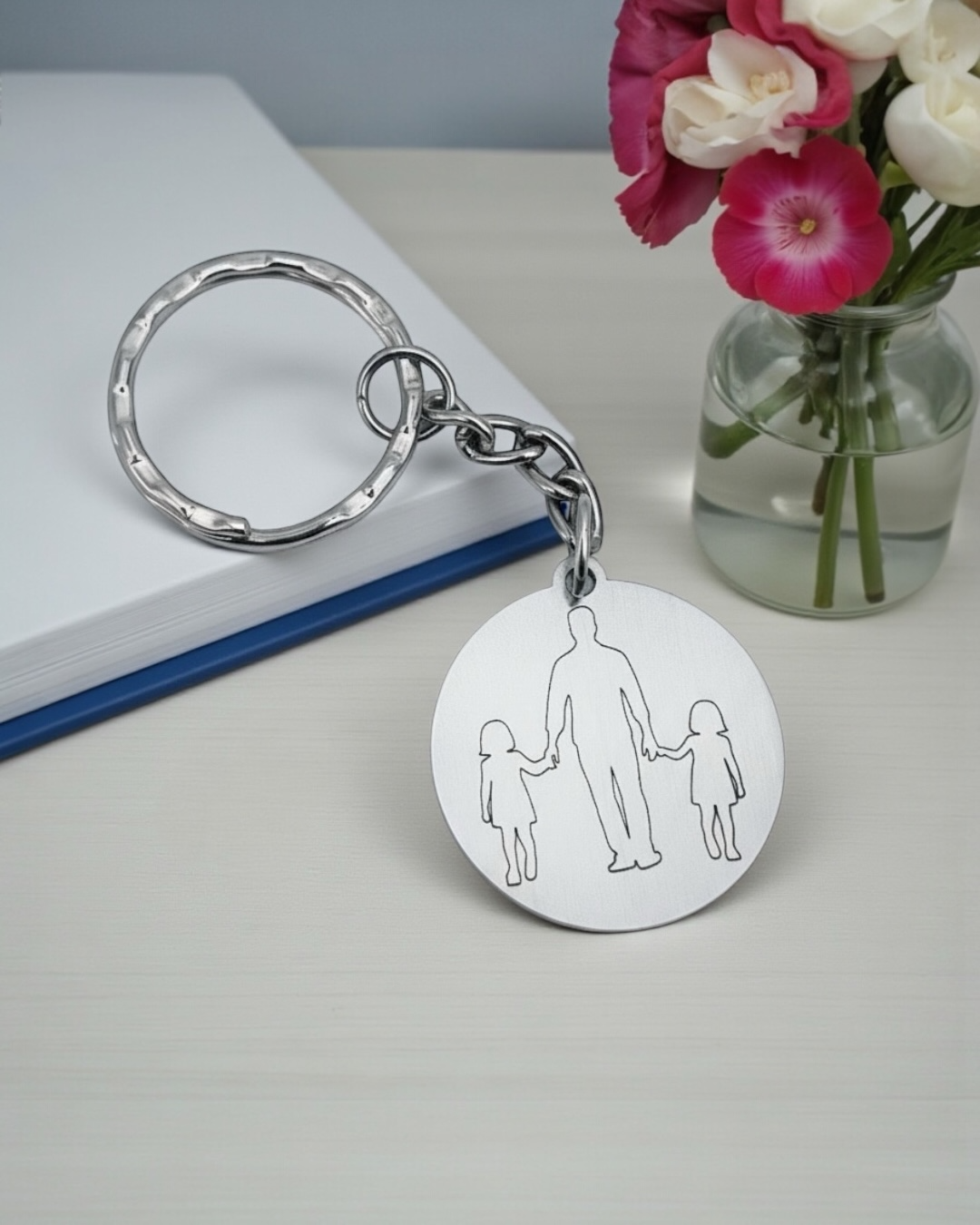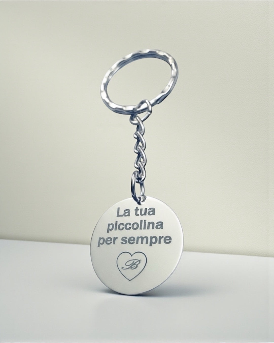Portachiavi con ciondolo tondo in Argento 925, possibilità di incisione.
